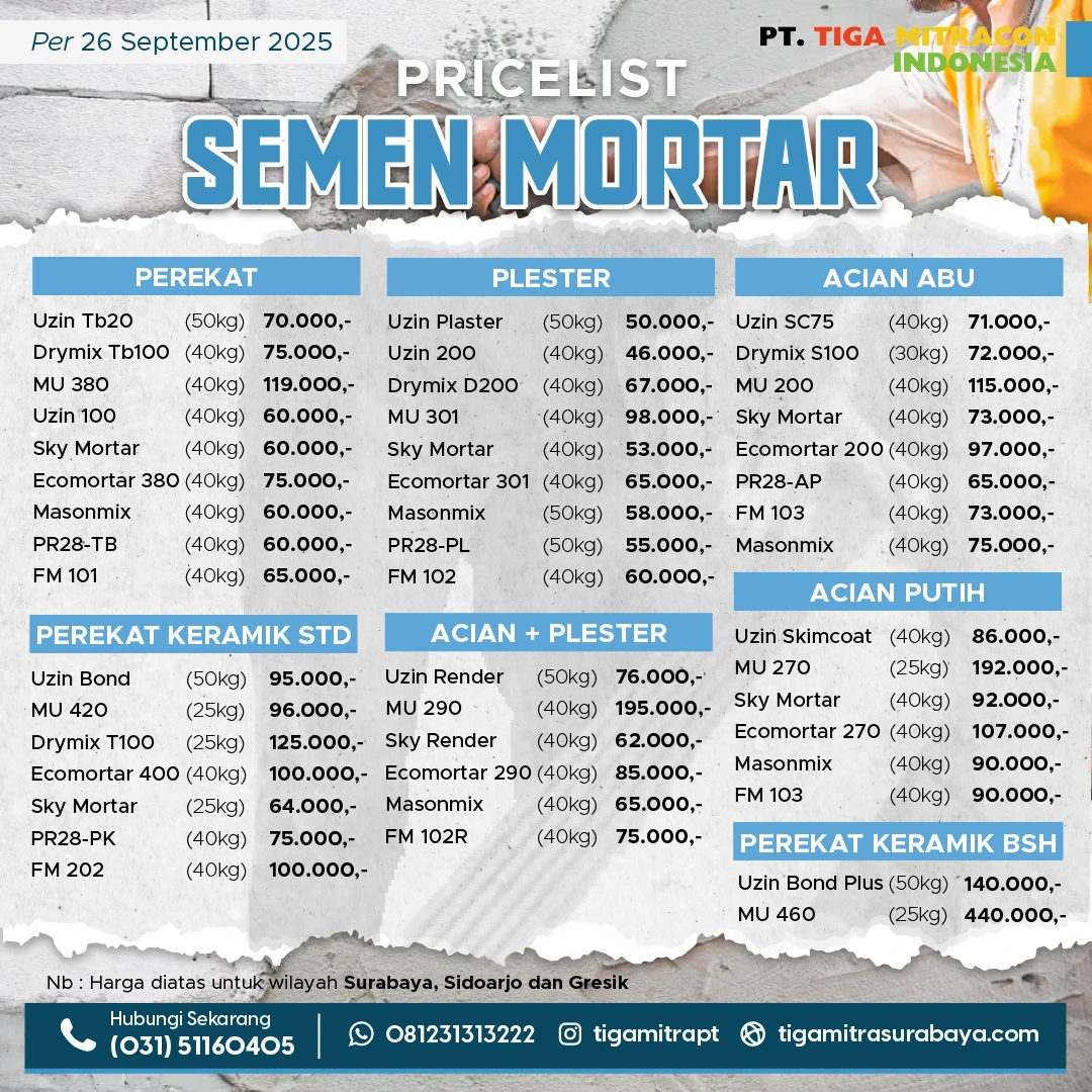 Note : Harga Per 20 Oktober 2025. Bata Ringan Citicon Free semen mortar 3 zak. (Minimal Pembelian 11,52 m3)